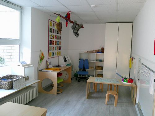 In dieser U-3 Gruppe liegt der Schwerpunkt auf den Rollenspielen. Es gibt einen kleinen Supermarkt, einen Verkleidungsbereich und im Moment einen Friseur.